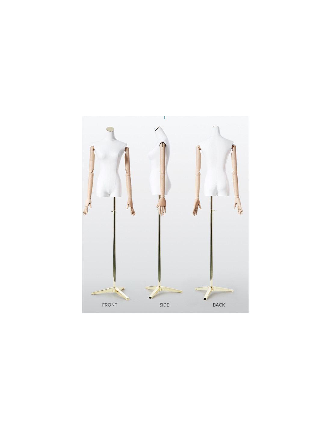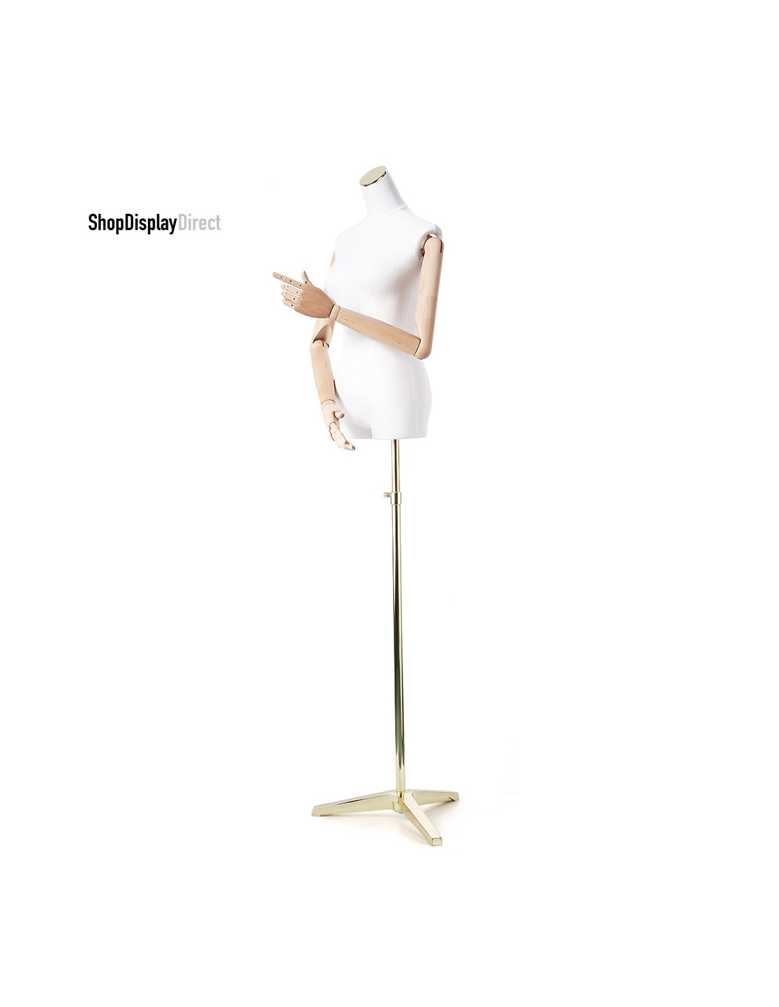 Female Tailored Articulated Wooden Arms Mannequin Tailors Dummy with and Metal Stand - White - Headless